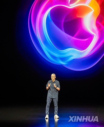 팀 쿡 애플 최고경영자(CEO)가 지난 2024년 9월 개최한 아이폰 출시 행사에서 인공지능(AI) 기능 '애플 인텔리전스'를 소개하고 있다. [신화=연합뉴스. 재판매 및 DB 금지] |
