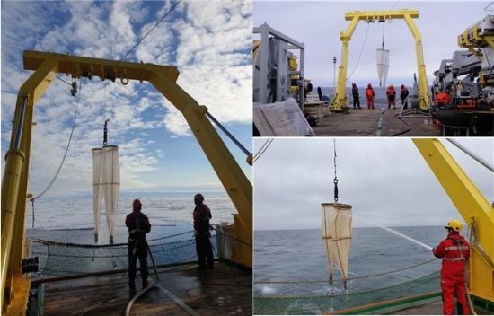 아라온호 북극해 동물플랑크톤 채집활동. 극지연구소 제공 |