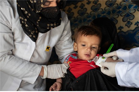 IRC 의료진이 아프간에서 10개월 된 영양실조 어린이를 진료하고 있다. |