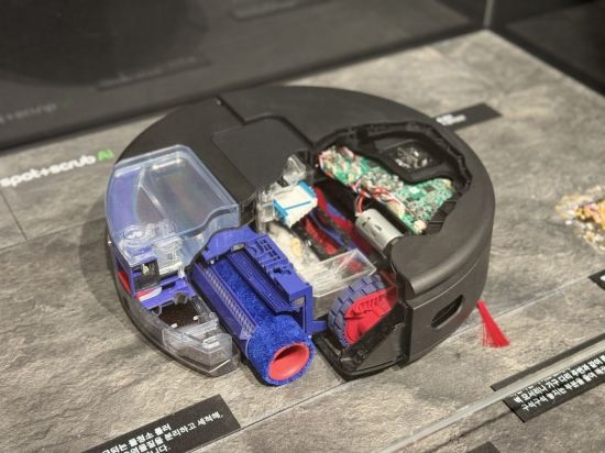 다이슨코리아가 22일 서울 여의도 더현대 서울에서 체험형 가전 팝업 스토어 '더 넥스트 홈 랩(The Next Home Lab)'을 열고 중국산 제품들이 장악한 로봇청소기 시장 반격을 선언했다. 행사장에 지난 12일 국내 출시된 '스팟앤스크럽 AI 로봇청소기'의 내부 구조와 기술을 보여주는 모형이 전시돼 있다. 장희준 기자 |