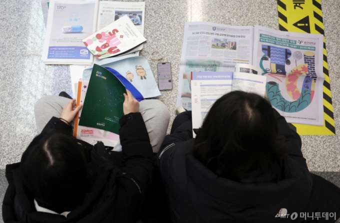 [서울=뉴시스] 홍효식 기자 = 18일 서울 강남구 코엑스에서 열린 2026학년도 정시 대학입학정보박람회를 찾은 입시생들이 자료를 살펴보고 있다. 2025.12.18. yesphoto@newsis.com /사진=홍효식 |