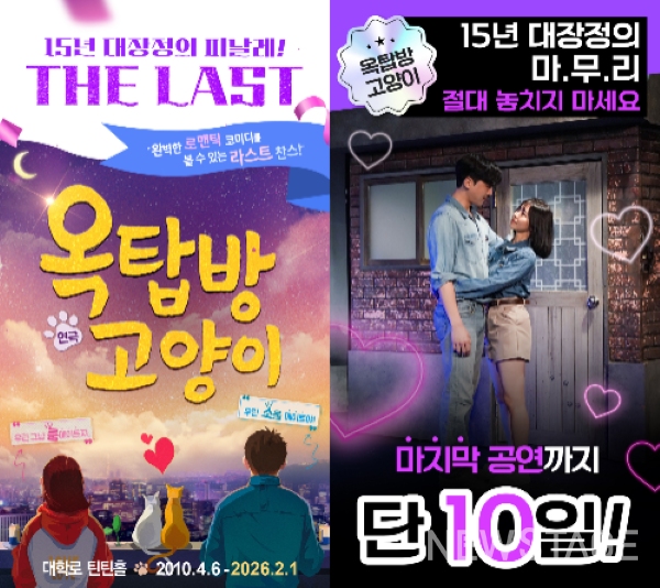 '옥탑방고양이'의 마지막 시즌이 더욱 의미를 갖는 이유는 15년간 대학로 중심에서 오픈런 공연을 이어온 틴틴홀에서의 마지막 무대이기 때문이다. 제작사 ㈜레드앤블루는 "15년간 축적된 관객 의견과 무대 경험을 토대로 작품 점검과 리뉴얼 작업을 진행하고 있으며, 작품의 매력은 유지하면서 시대의 감수성을 반영한 새로운 시즌을 준비 중"이라며 "오랜 시간 작품을 사랑해준 관객들에게 감사드린다"고 전했다.