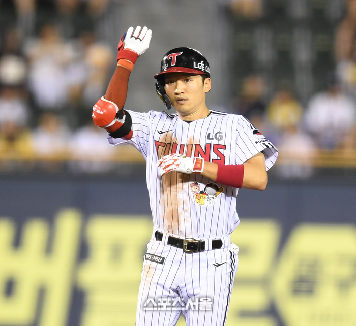 LG 박해민이 6일 서울 잠실구장에서 열린 2025 KBO리그 두산과 경기 7회말 2루타를 친 후 세리머니를 하고 있다. 잠실 | 최승섭기자 thunder@sportsseoul.com |