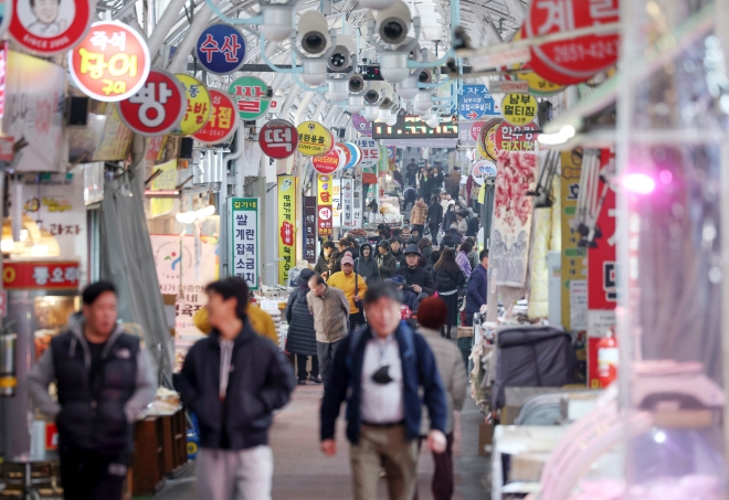25일 서울 시내의 한 전통시장이 시민들로 붐비고 있다. 2025.11.25. 뉴시스 |