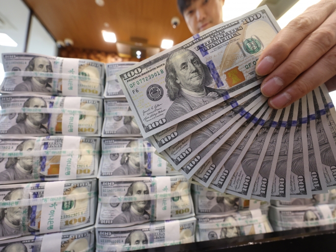 16일 서울 중구 하나은행 위변조대응센터에서 직원이 달러화를 정리하고 있다. 2025.12.16. 연합뉴스 |