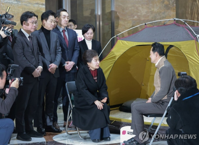지난 22일 박 전 대통령은 국회 단식 농성장을 찾아 장 대표의 건강을 우려하며 단식 중단을 권유했다.