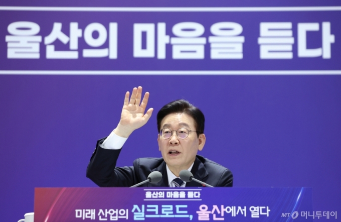 [울산=뉴시스] 최동준 기자 = 이재명 대통령이 23일 울산전시컨벤션센터에서 열린 '울산의 마음을 듣다' 타운홀 미팅에서 발언하고 있다. (청와대통신사진기자단) 2026.01.23. photocdj@newsis.com /사진= |