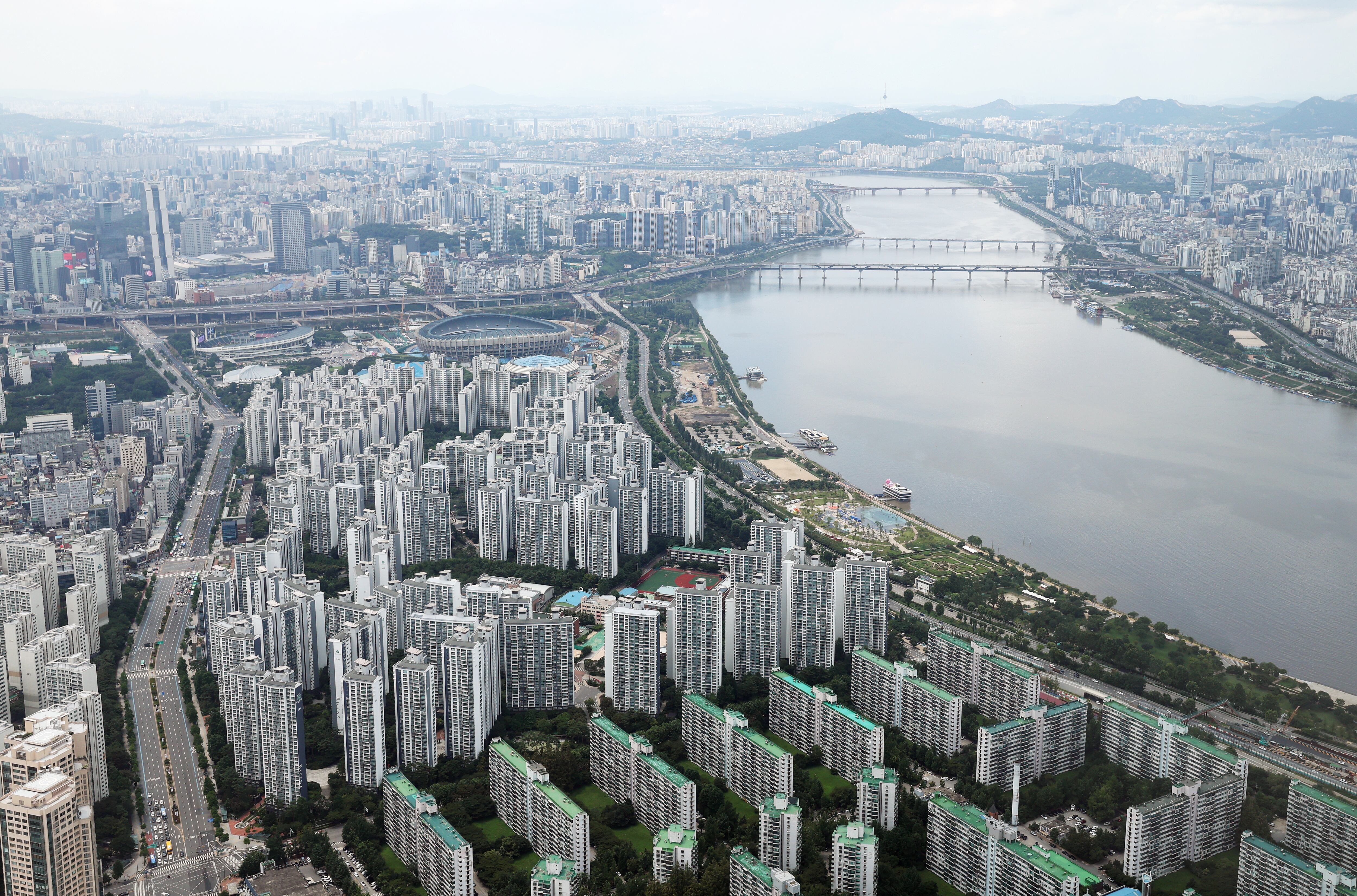 서울 송파구 롯데월드타워 전망대 서울스카이에서 바라본 시내 아파트 단지 모습. /뉴스1 |