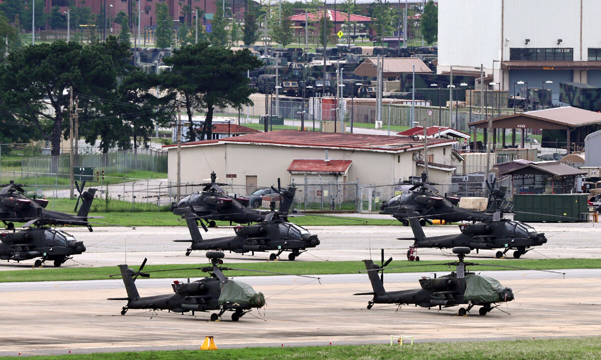 주한미군 아파치 공격헬기 주한미군 소속 AH-64E 아파치 공격헬기들이 지난해 8월17일 한·미 연합 을지 자유의 방패(UFS) 훈련을 앞두고 경기 평택시 캠프 험프리스 주한미군기지에 계류되어 있다. 평택=뉴스1 |