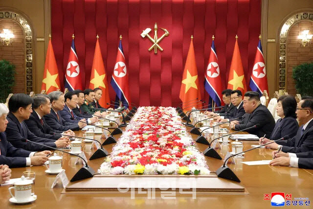 럼 서기장은 작년 10월 북한에서 사흘 일정의 국빈 방문 일정을 소화했다. 베트남 최고지도자가 북한을 찾은 것은 2007년 농 득 마인 당시 공산당 서기장 방북 이후 18년 만이었다. 당시 북한은 노동당 창건 80주년을 맞아 ‘다자외교’를 강화하는 측면에서 베트남을 초대한 바 있다.