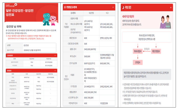 전자문서 양식의 일반 건강검진·암검진 검진표·안내문(사진=국민건강보험공단) |