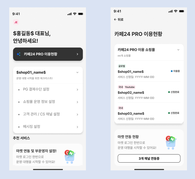 사업 확장을 위한 결제 시스템 및 외부 채널 연동 프로세스 역시 대폭 간소화되었다. 카카오페이, 네이버페이 주문형 등 도입 절차가 복잡한 주요 간편결제 서비스를 앱 내에서 몇 번의 터치만으로 신청할 수 있는 전용 동선을 구축했다. 아울러 에이블리, 롯데온, 카카오톡 스토어 등 주요 판매 채널과의 시스템 연동을 지원해 사업자가 추가적인 운영 리소스 투입 없이도 판매 접점을 신속하게 확대할 수 있는 환경을 마련했다. 사용자 경험(UX)을 고려해 설계된 홈 화면은 오늘 처리해야 할 과업과 운영 대행 현황을 한눈에 파악할 수 있도록 구성됐으며, 실시간 주문 알림 기능을 통해 고객 대응 속도를 높였다.