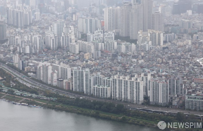 [서울=뉴스핌] 김학선 기자 = 서울 송파구 롯데월드타워에서 바라본 한강변 아파트 단지의 모습. 2025.10.13 yooksa@newspim.com |