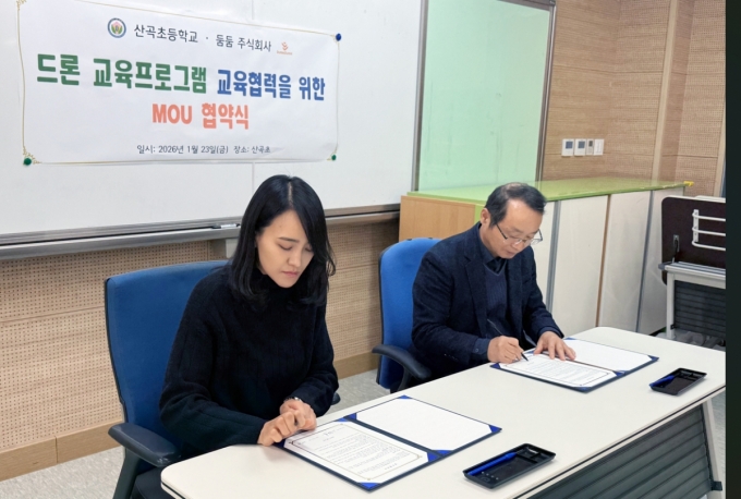 둠둠(대표 주청림)이 산곡초등학교와 드론 교육 프로그램 운영을 위한 업무협약(MOU)을 체결했다고 26일 밝혔다.