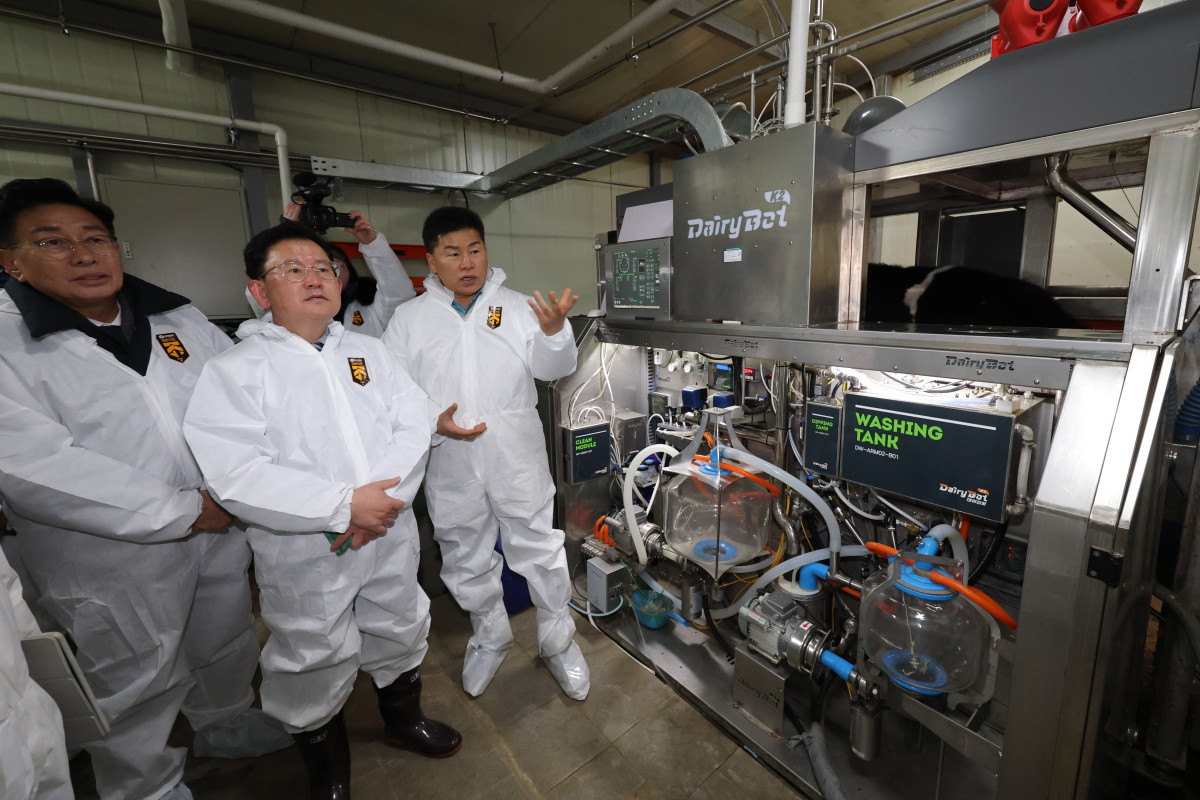 이승돈 농촌진흥청장은 26일 경기도 양평군 로봇착유기 도입 농가를 찾아 국산 로봇착유기 운영 현황과 노동력 절감 효과를 점검했다.