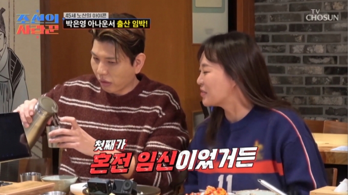 26일 방영된 TV조선 '조선의 사랑꾼' 106회에서는 개그우먼 정주리가 만삭의 박은영 아나운서, 홍현희 남편 제이쓴을 만나 식사하는 모습이 그려졌다.