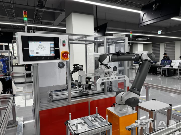 [서울=뉴시스] 심지혜 기자= 전북대에 마련된 전북 피지컬AI 실증랩에 마련된 자동화 로봇. 20260126 |