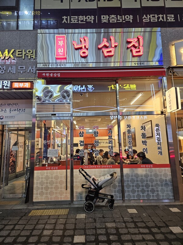 부원냉삼집은 이러한 동탄 지역 특성과 맞닿아 있는 브랜드다. 2018년 첫 매장 오픈 이후 현재까지 8년간 웨이팅이 이어지며, 유행성 브랜드가 아닌 '검증된 냉삼 전문점'으로 자리 잡아왔다.