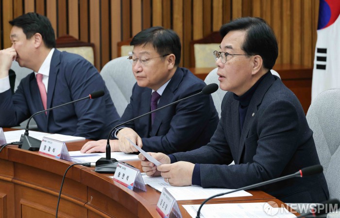 [서울=뉴스핌] 윤창빈 기자 = 송언석 국민의힘 원내대표가 27일 서울 여의도 국회에서 열린 '통일교 게이트·공천뇌물 특검법' 토론회에서 인사말을 하고 있다. 2026.01.27 pangbin@newspim.com