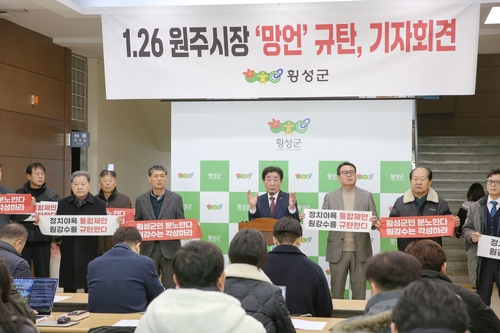김명기 횡성군수와 횡성지역 사회단체 원주시장의 원주·횡성 행정통합 제안 규탄 |