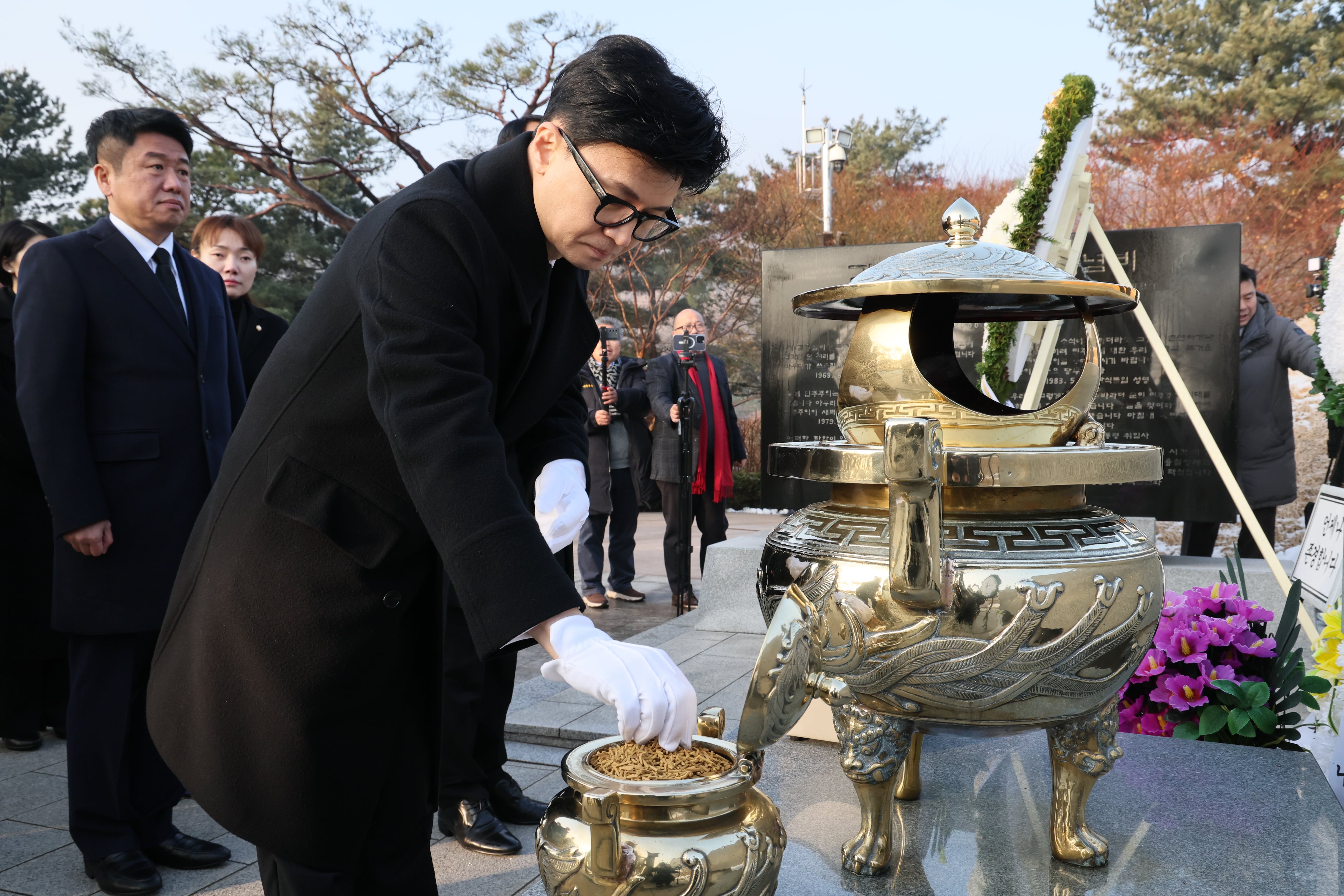 국민의힘 한동훈 전 대표가 국민의힘 비상대책위원장이던 지난 2024년 1월 1일 오전 서울 동작구 국립서울현충원을 찾아 김영삼 前 대통령 묘역을 참배하고 있다. /국민의힘 |