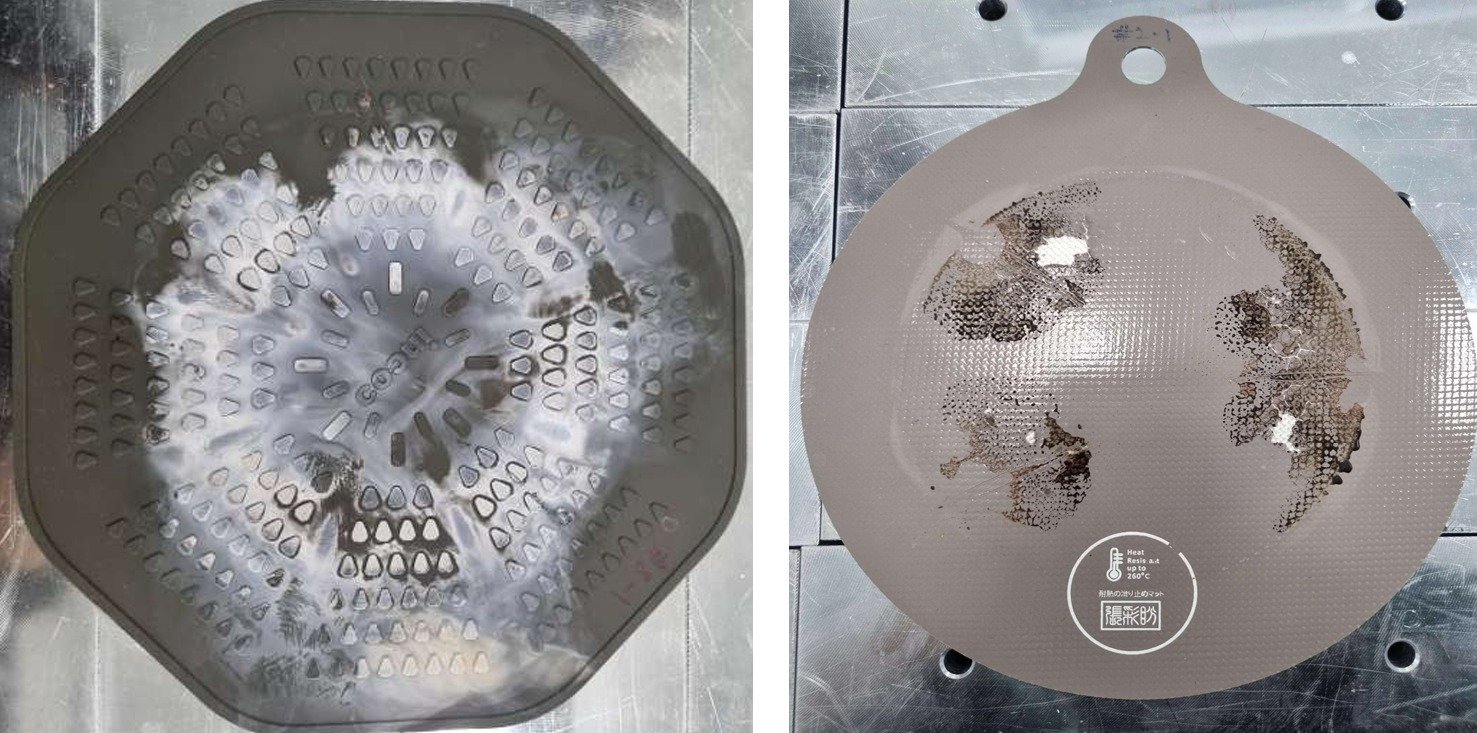 한국 소비자원이 공개한 국물 증발 후 가열 시 변형된 인덕션 보호매트 사진(한국소비자원 제공) ⓒ News1 |
