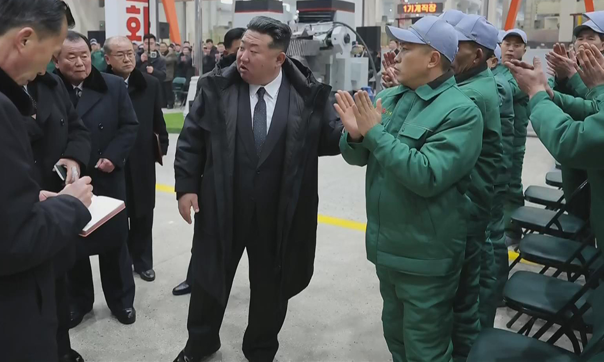 김정은 북한 국무위원장이 19일 함경남도 용성기계연합기업소에서 열린 ‘용성기계연합기업소 1단계 개건현대화대상 준공식’에 참석해 관계자들과 대화하고 있다. 뉴시스·조선중앙TV |