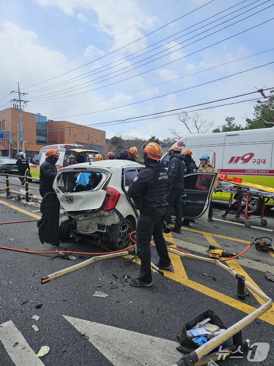 지난해 3월 청주시 서원구 수곡동 한 삼거리에서 발생한 교통사고 현장./뉴스1 |
