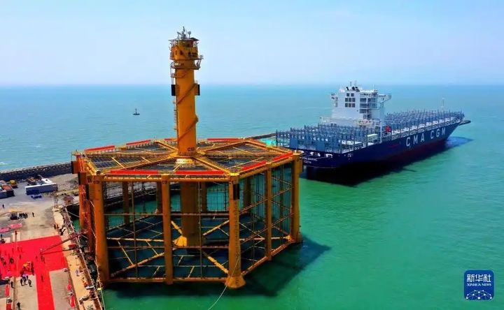 [서울=뉴시스] 중국이 21일 서해 잠정조치수역(PMZ)에 설치한 구조물에 대해 어업 양식 시설로 한중 협정 위반이 아니라는 입장을 재확인했다. 사진은 지난해 5월9일 산둥성 칭다오항에 있는 반잠수식 구조물 '선란(深蘭.Deep Blue)2호의 모습. <사진출처: 신화통신 웨이보> 2025.04.22 |