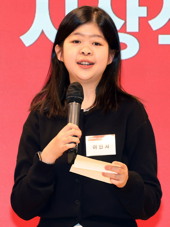 이인서 씨가 27일 서울 중구 KG타워에서 열린 곽재선문화재단 ‘제4회 마하 아트 공모전 시상식’에서 대상을 수상한 뒤, 수상 소감을 말하고 있다(사진=방인권 기자). |