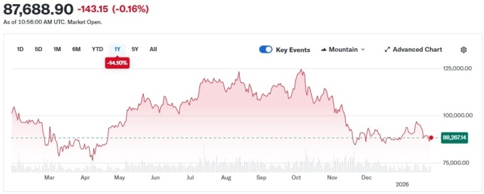 한국시간 오후 8시 기준 비트코인(BTC)은 24시간 전보다 0.09% 내린 8만7725달러로 약보합에 머물고 있다. 최근 일주일 기준으로는 약 4% 하락했다. 이더리움은 2902달러에 거래됐고, BNB·솔라나(SOL)·XRP 등 주요 알트코인은 혼조세다.