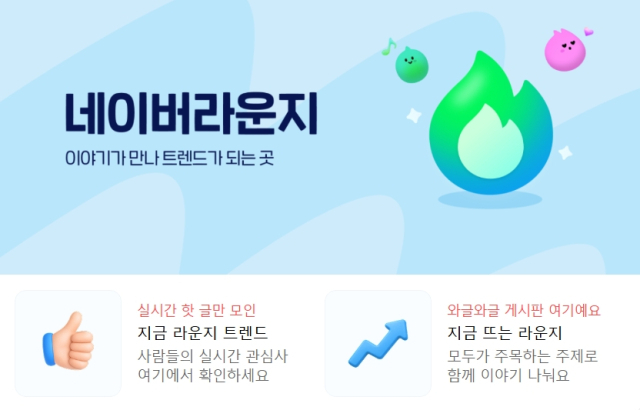 라운지는 네이버가 20년 이상 지식iN·블로그·카페 등 사용자 생성 콘텐츠(UGC) 서비스를 운영하며 쌓아온 노하우가 집약된 오픈 커뮤니티다. 별도 가입 없이도 최신 트렌드에 대해 가볍게 소통할 수 있는 점이 특징이며 주제별 게시판마다 '오픈톡'이 자동으로 연계돼 게시글·댓글뿐 아니라 실시간 채팅인 '톡'을 넘나들 수 있다.
