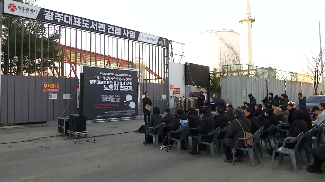 도서관 붕괴 사고 유가족과 시민단체들은 오늘(28일) 오전 광주 서구 치평동 사고 현장에서 참사 49일 노동자 추모제를 열었습니다.