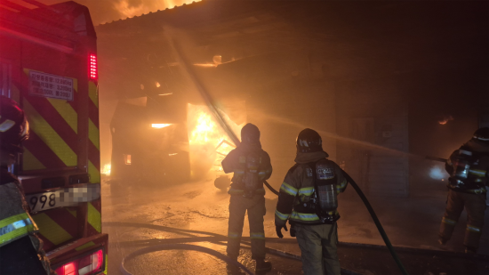 신고받고 출동한 소방 당국은 인력 97명, 장비 35대를 동원해 오전 4시 20분께 큰불을 잡고 굴착기를 동원해 잔불을 정리하는 등 화재 발생 7시간 만인 오전 7시 16분께 불을 모두 껐다.