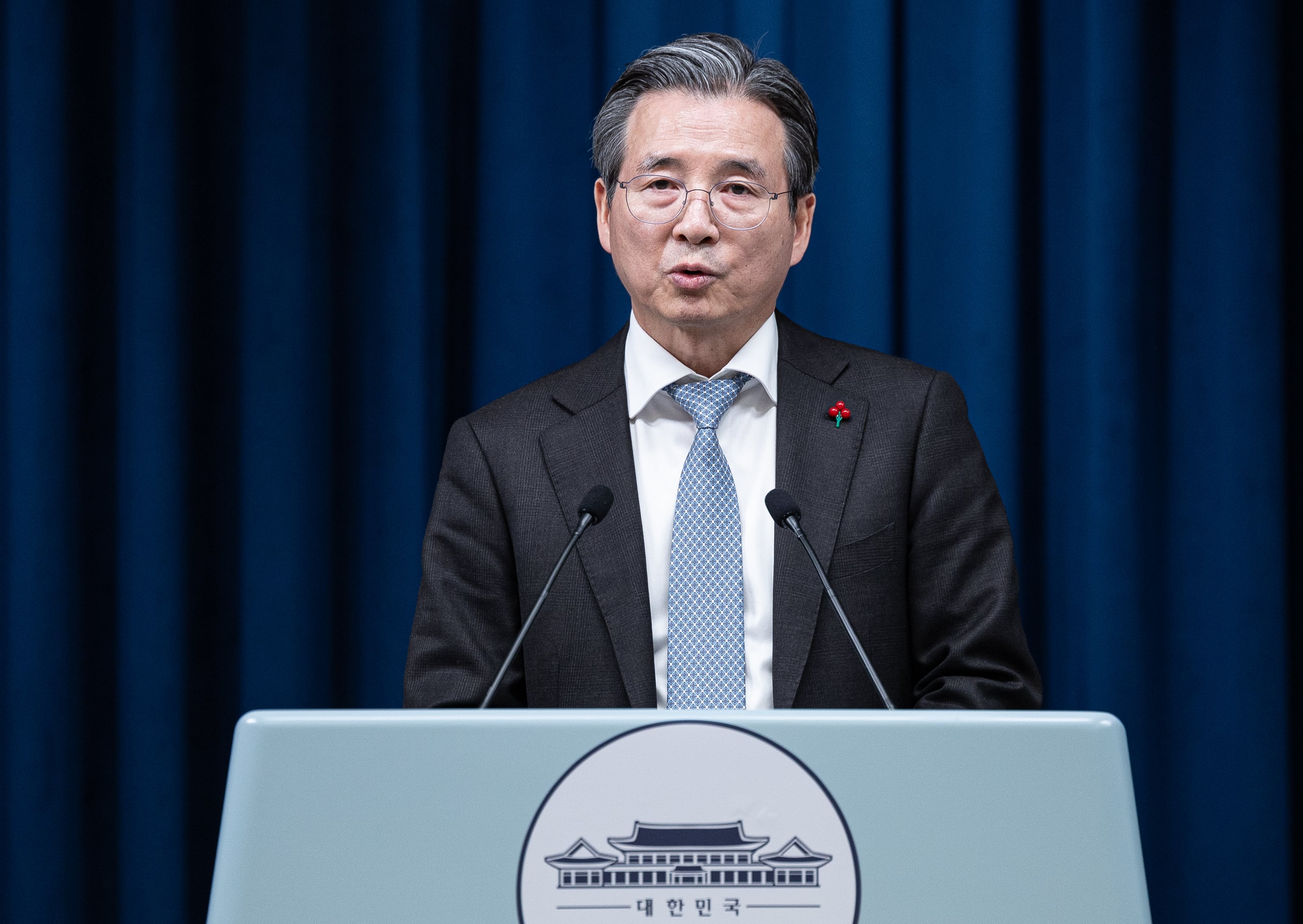김용범 대통령실 정책실장이 5일 서울 용산 대통령실 청사에서 손정의 소프트뱅크그룹 회장 접견 관련 브리핑을 하고 있다. /뉴스1 |