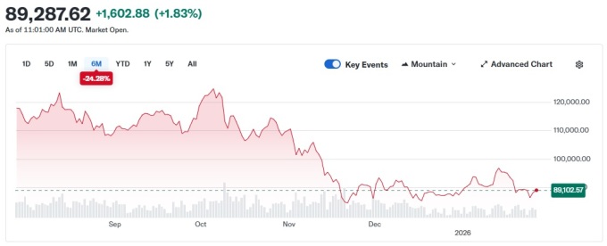 비트코인 차트, 자료=야후 파이낸스, 2026.01.28 koinwon@newspim.com |