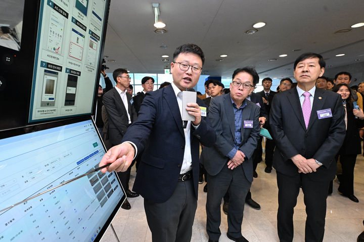 [세종=뉴시스] 구윤철 경제부총리 겸 기획재정부 장관이 28일 서울 마포구 누리꿈스퀘어에서 열린 '2025 공공기관 AI 대전환 워크숍'에 참석, 공공기관 전시부스를 참관하며 관계자의 설명을 듣고 있다. (사진=기재부 제공) 2025.10.28. photo@newsis.com *재판매 및 DB 금지 |