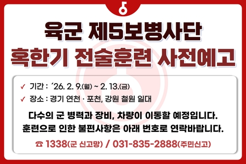 훈련 관련 불편사항은 5사단(☎ 031-835-2888)으로 연락하면 된다.