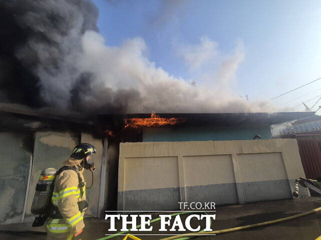 공주소방서에 따르면 이날 오전 9시 37분쯤 유구읍 녹천리의 한 주택 옆 차고 겸 창고에서 화재가 발생했다. 불은 인근 주택으로 번지며 피해를 키웠다.