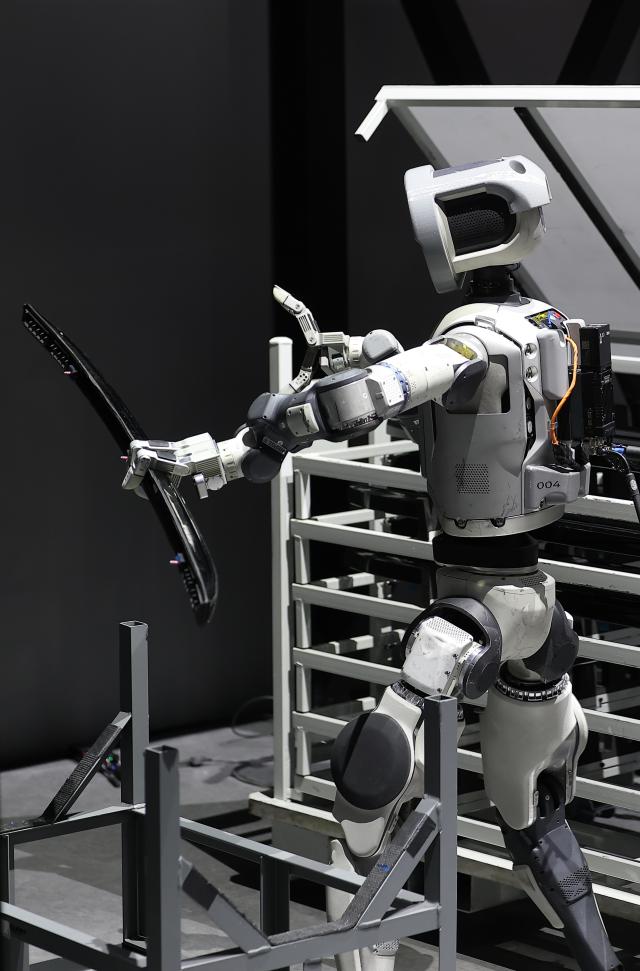 미국 네바다주 라스베이거스 컨벤션센터(LVCC) 현대자동차 부스에서 로봇 아틀라스가 부품 이동을 시연하고 있다.[사진=연합뉴스] |