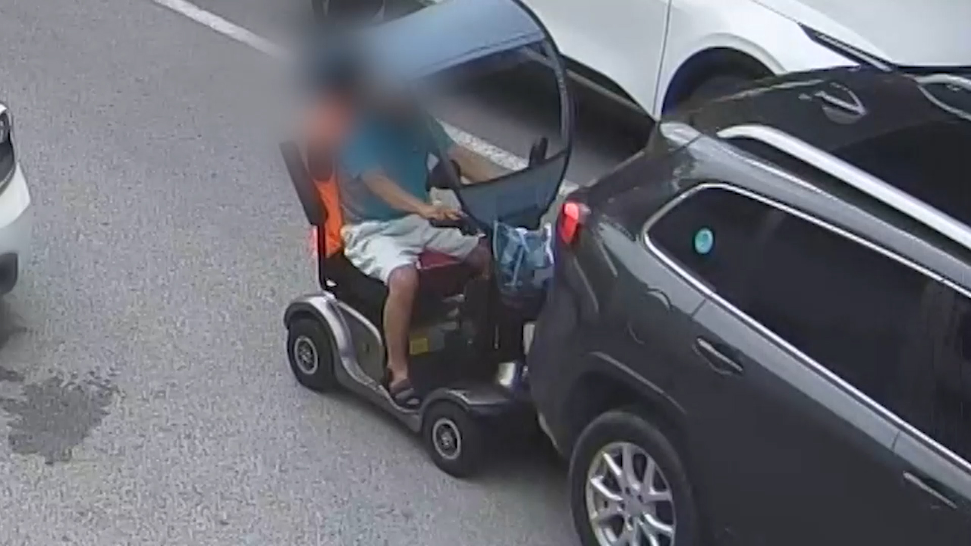 충주의 한 도로에 전동 휠체어가 들어오더니 후진하던 승용차와 그대로 부딪힙니다.