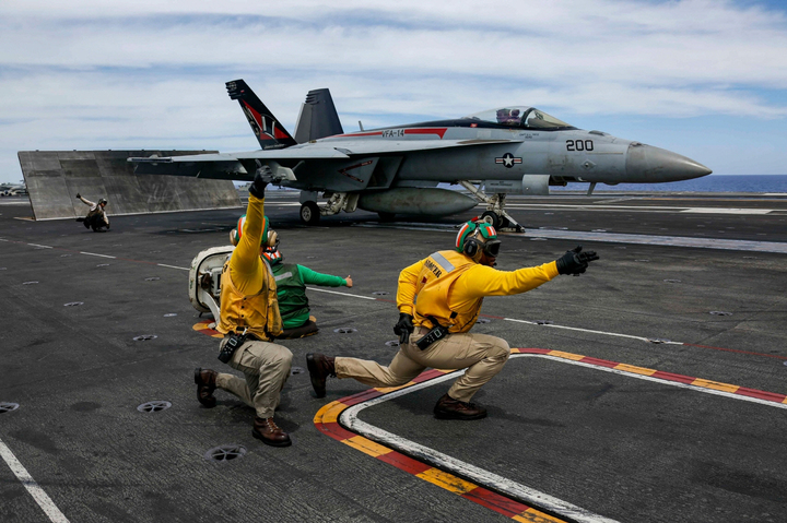 [서울=뉴시스] 2022년 자료사진으로 미 항공모함 에이브러햄 링컨호 훈련 장면. 2022.05.22. (사진=미 7함대 트위터 갈무리) *재판매 및 DB 금지 |