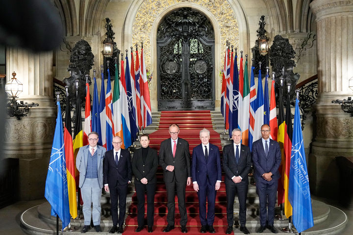 [함부르크=AP/뉴시스] 26일(현지 시간) 독일 함부르크에서 열린 북해정상회의 참석자들이 기념 촬영을 하고 있다. 이 회의에서 북해 연안국 정상들은 해상 풍력 에너지와 수소 인프라 확충을 위한 국가 간 협력 강화를 도모했다. 왼쪽부터 바르트 드 베버 벨기에, 뤽 프리덴 룩셈부르크, 메테 프레데릭센 덴마크, 프리드리히 메르츠 독일, 요나스 가르 스퇴르 노르웨이, 딕 스호프 네덜란드 총리. 2026.01.30. |