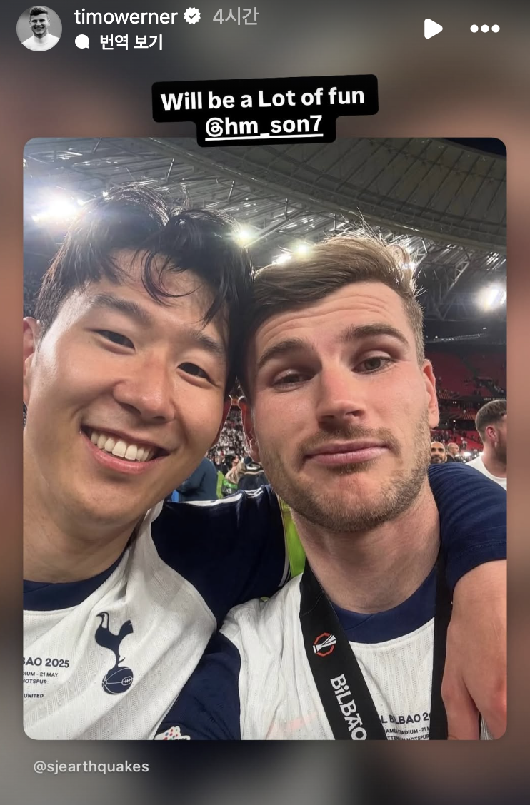베르너와 산호세 어스퀘이크는 영입을 확정한 동시에 MLS 최고 스타 손흥민을 활용했다. 베르너는 자신의 인스타그램에 손흥민을 태그하며 ‘정말 즐거웠던 시간’이라고 알렸고, 산호세 어스퀘이크도 “9월 19일에 손흥민과 베르너가 다시 만난다”라고 대대적인 홍보에 나섰다.