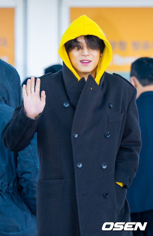 세븐틴 민규가 출국장으로 향하며 인사를 하고 있다. 2026.01.30 / rumi@osen.co.kr