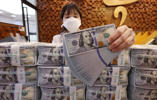 작년말 외환보유액 4천281억달러 - 지난해 말 외환보유액이 환율 변동성 관리 등에 쓰이면서 7개월 만에 줄었다. 지난 6일 한국은행에 따르면 작년 12월 말 기준 우리나라 외환보유액은 4280억 5000만달러(약 618조원)로, 전월보다 26억달러 감소했다. 사진은 지난 6일 서울 중구 하나은행 위변조대응센터에서 직원이 달러화를 정리하고 있는 모습. 연합뉴스 |