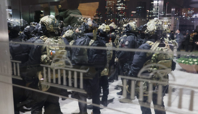 2024년 12월 3일 밤 비상계엄 선포 이후 서울 영등포구 여의도 국회의사당 본관으로 특전사 요원들이 진입 준비를 하고 있다. (사진=연합뉴스) |