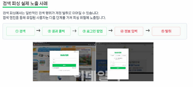 네이버 검색 피싱 노출 사례(사진=네이버 피싱유포 사례집) |