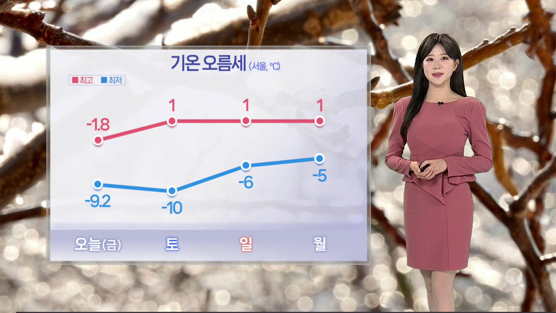 내일 아침 서울은 영하 10도, 대전 영하 9도로 출발하겠습니다.