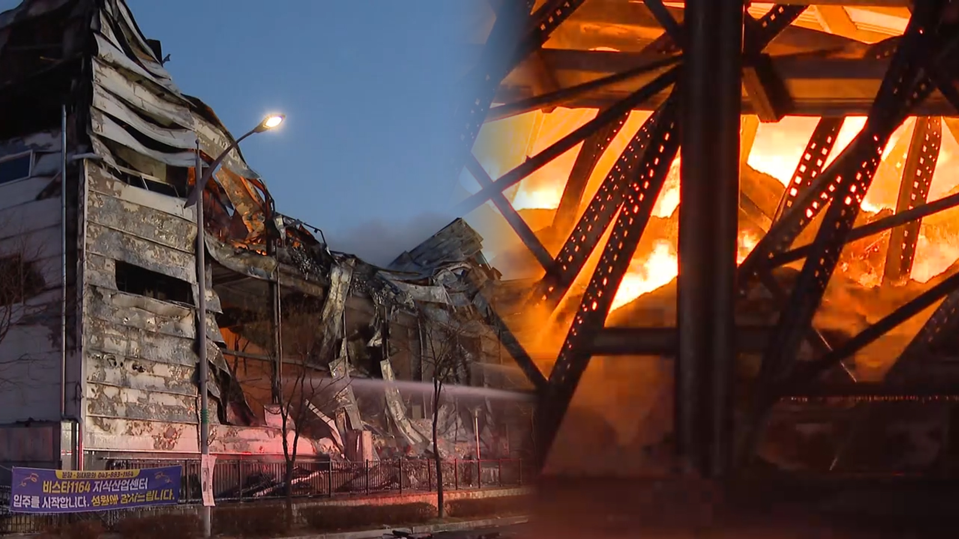 샌드위치 패널로 된 건물 곳곳이 녹아내린 모습도 보실 수 있습니다.